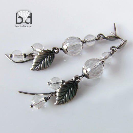 ArsNeo > Biżuteria > Kolczyki > Kryształ górski w liściach