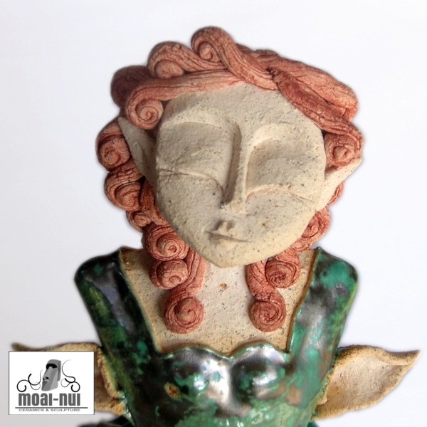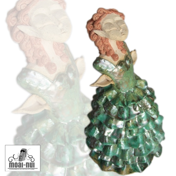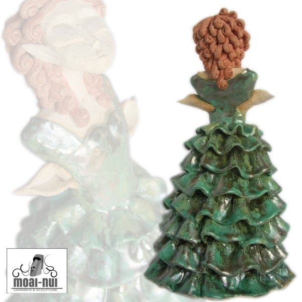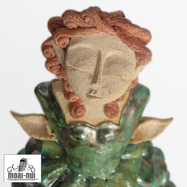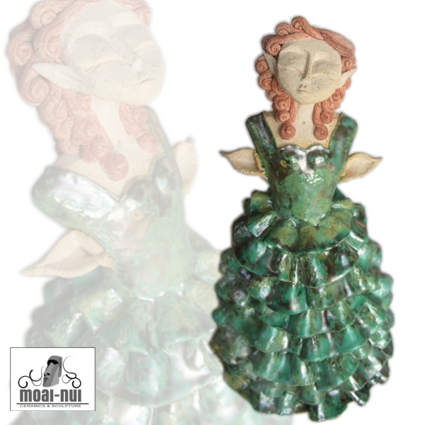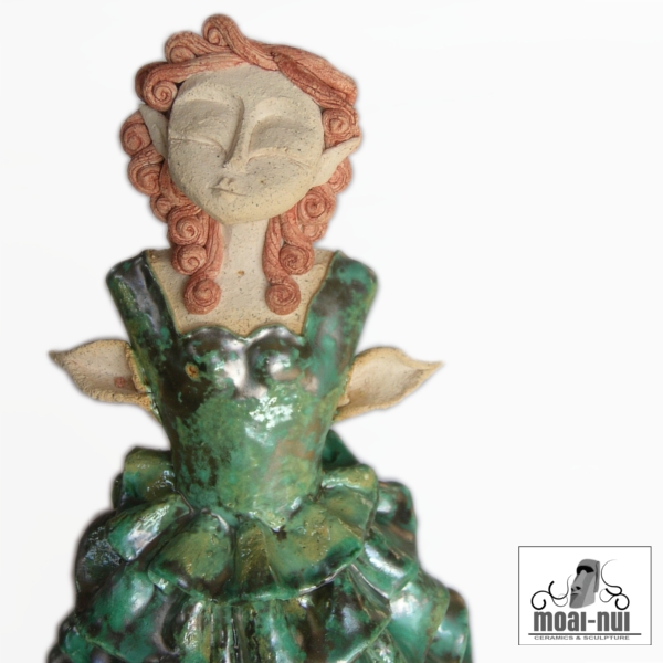 Postać owiana tajemniczością i fascynacją. Światem wyśnionym. Szpiczaste uszy, długie włosy, niesamowity wygląd czy długowieczność to cechy, których suma składa się na jej Magiczność. Sylwetka wykonana ręcznie z gliny szamotowej, wypalona w temp. 1060'C. Niesamowicie efektowne szkliwo, mimo matowego charakteru mieni się srebrzystymi refleksami. Każda z postaci jest unikatowa. Próżno szukać drugiej, identycznej twarzy czy sukni. Wysokość ok. 28 cm Szerokość sukni ok. 15,5 cm