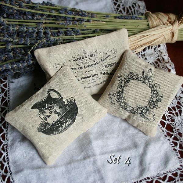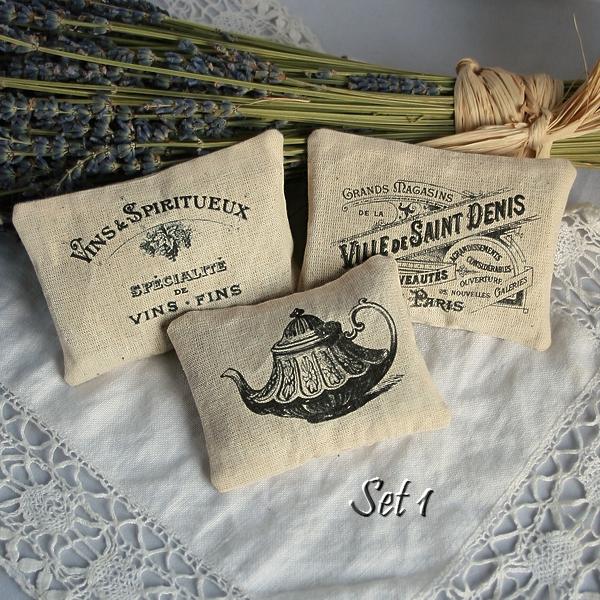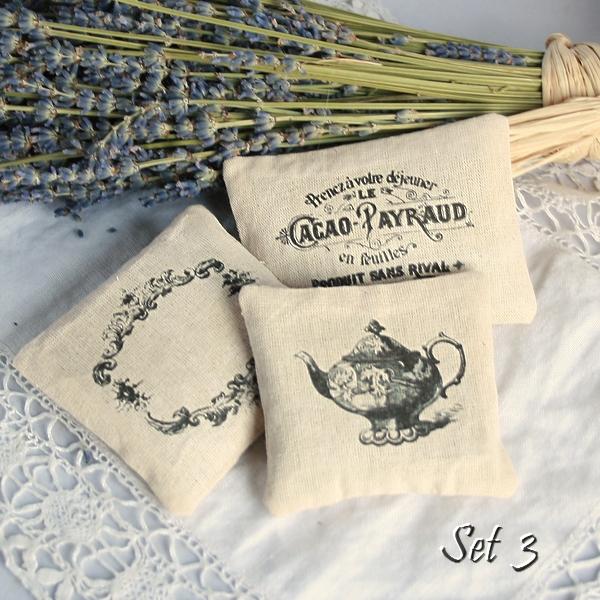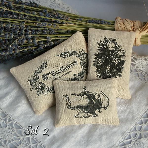 Uwielbiam lawendę za jej kojący zmysły zapach. Dlatego wykonałam całą serię uroczych poduszeczek w stylu vintage wypełnionych mieszanką lawendy i ryżu (dla nadania im wagi- na życzenie mogę wykonać saszetki wypełnione jedynie lawendą) Lnianą tkaninę ozdobiłam wydrukami zaczerpniętymi ze starych etykiet i rycin. Dostępnych jest kilka wzorów- przy zamówieniu proszę o podanie nr zestawu Jeden zestaw zawiera trzy własnoręcznie wykonane poduszeczki - różnią się one deseniem i wielkością - największa ma około 10x8cm. Ze względu na to, że poduszeczki wykonane i nadrukowywane są ręcznie, mogą się one nieznacznie różnić od tych pokazanych na zdjęciu. Poduszeczki wykonuję na zamówienie i napełniam mieszanką lawendy przed samą wysyłką - czas realizacji zamówienia to około 5 dni roboczych. Mogę wykonać dowolną ilość- idealne np jako drobny upominek dla gości weselnych- cena do uzgodnienia indywidualnie. UWAGA! wysyłka z Wielkiej Brytanii