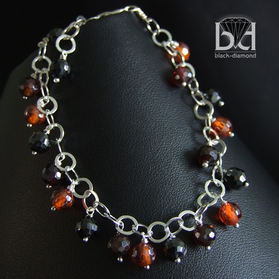 Elegancka, urokliwa bransoletka, wykonana z cyrkonii w trzech kolorach (średnica 6 mm) oraz srebra. Będzie idealnie pasowała na nadgarstek o obwodzie 15,5 - 17 cm. Długość bransoletki ok 18,5 cm + 2,5 cm regulacyjnego łańcuszka. Biżuterię otrzymasz w pudełku jubilerskim.