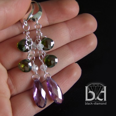 Długie, błyszczące kolczyki wykonane z pięknie szlifowanych cyrkonii oraz srebra. Długość największych cyrkonii: 1,8 cm. Długość całkowita: 7 cm. Zdjęcie niestety nie ukazuje uroku i blasku kolczyków. Biżuterię otrzymasz w ozdobnym pudełeczku. Jeśli zależy Ci na przesyłce kurierem - skontaktuj się ze mną.