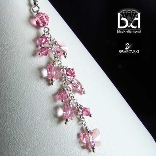 Słodkie, urocze, bardzo lekkie kolczyki wykonane z kryształów Swarovski oraz srebra. Biżuterię Black Diamond dotrzymasz w eleganckim, sztywnym pudełeczku jubilerskim - bez zbędnych napisów. Na każdym kolczyku są 4 małe i jeden większy motylek (6 i 8 mm). Długość całkowita: 8 cm. Długość bez bigli: 6,5 cm.