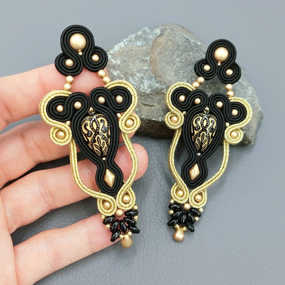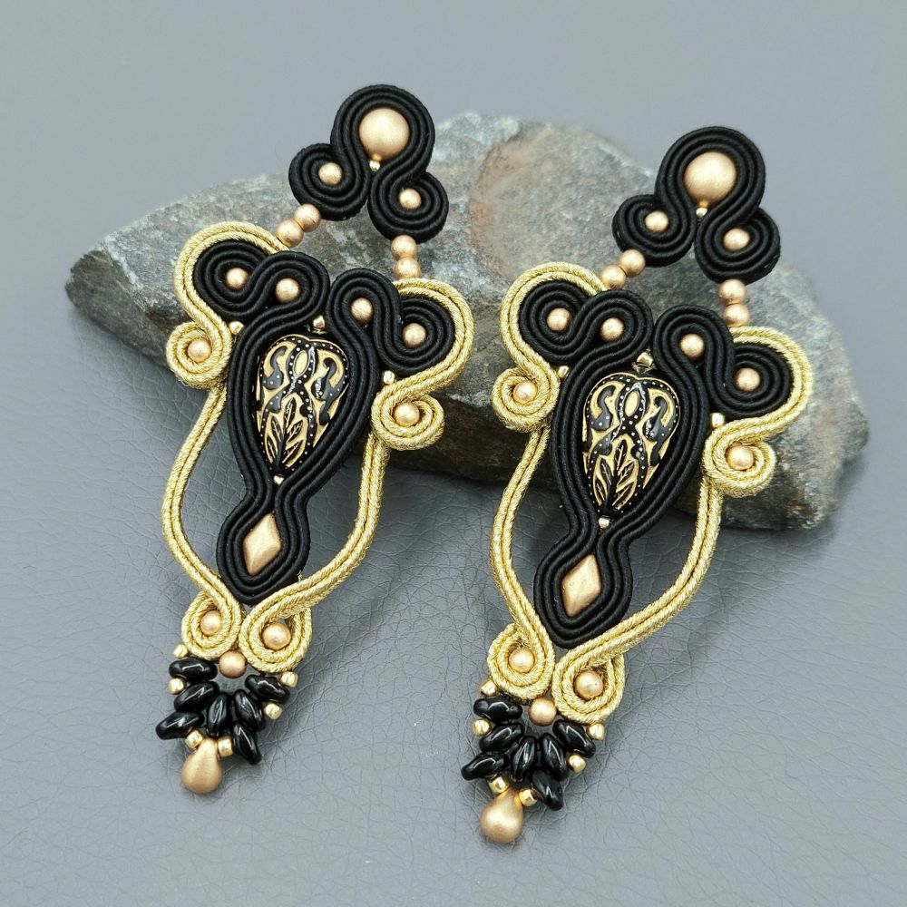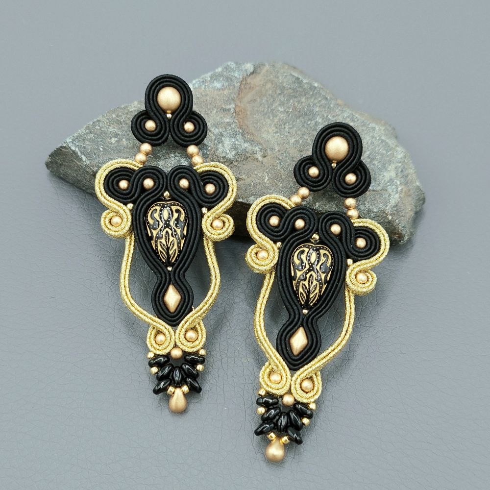 „Vintage” złoto czarne ażurowe kolczyki sutasz