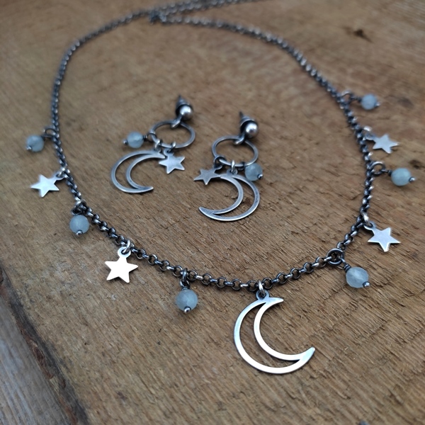 ArsNeo > Biżuteria > Naszyjniki > Naszyjnik z zawieszkami - księżyc z akwamarynem