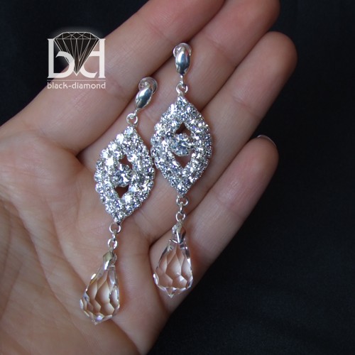 Eleganckie, bogate kolczyki wykonane z kryształów Swarovski (2 cm), srebra pr. 925 oraz elementów posrebrzanych z cyrkoniami. Elementy te są oczywiście wolne od niklu i ołowiu. Długość całkowita: 7,2 cm. Długość ozdobnych elementów: 3,3 cm, szerokość ozdobnych elementów: 1,7 cm. Kolczyki otrzymasz w pudełeczku jubilerskim.